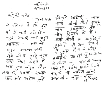 Your nana, nani, Jiji mausi and Kukoo mama are in Delhi these days. Jiji mausi has been operated upon. Now she is all right.